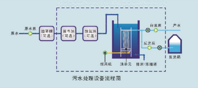 污水處理設備是由本體、曝氣系統(tǒng)、反硝化系統(tǒng)、MBR膜過濾系統(tǒng)、紫外消毒系統(tǒng)、PLC自控系統(tǒng)及生物載體組成。